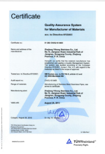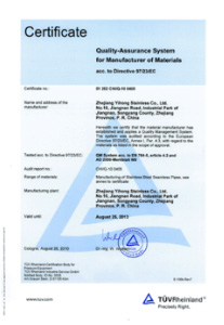公司嚴格按ISO9001:2015《質(zhì)量管理體系—要求》、ISO14001:2015《環(huán)境管理體系 要求及使用指南》、ISO 45001:2018《職業(yè)健康管理體系 要求及使用指南》和TSG 07—2019《特種設(shè)備生產(chǎn)和充裝單位許可規(guī)則》,建立完善的管理體系。公司擁有國內(nèi)較大的12000KN冷拔機組和先進的全溫控不銹鋼固溶退火爐等生產(chǎn)設(shè)備,同時具有ET16-159渦流探傷儀、UT16-159超聲波探傷儀、UT159-830超聲波探傷儀、H159-630水壓試驗機、WAD—600液壓材料試驗機、4XB電腦金相顯微鏡、JQ—300沖擊試驗機、HBRVU—187.5硬度計、島津光譜儀、化學分析儀、晶間腐蝕試驗等完善的檢測設(shè)備。